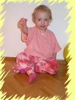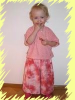 | Die Hosen sind aus Batik-Cord genäht in